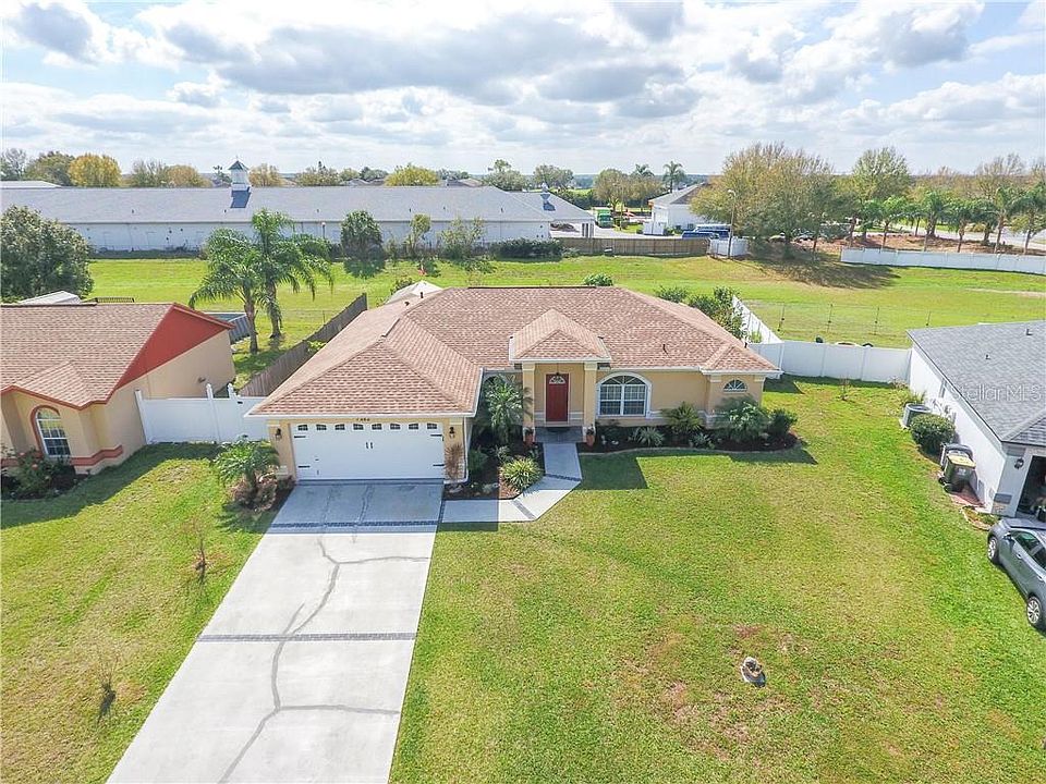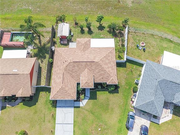 Immaculate and move in ready! Updated 3 bedroom, 2 bath home with bonus room & almost half an acre lot. There is so much to love about this home! As you arrive you will love the curb appeal, landscaping, & fresh exterior paint. Enter this bright & open home to high ceilings, updated ceramic tile throughout entire home, & bonus room that gives a nice open feel leading to a beautiful screened patio. The split floor plan is great for entertaining featuring a dining room, a living room, eat-in kitchen w/ breakfast bar, family room, & indoor laundry! The newly updated bathrooms are a must see! Designer tile, brand new vanities, newly tiled showers with low entry for ease getting in and out, and all new fixtures! Master en-suite bath is large w/ granite double sink vanity & seamless glass shower. Large walk-in closet in master as well. Everything is meticulously kept and pride of ownership shows throughout. New stainless steel appliances, new ROOF 2018, new HVAC 2017, hurricane garage door, & storage shed with hurricane straps. 2 car garage w/ room for cars & storage. Outdoors you will love the screened patio And back yard with so much space beyond! Well loved fruit trees including mango, papaya, guava, Barbados cherries, citrus & more! There's even a second covered porch & rain-barrel that is a gardener's delight. No neighbors behind this home! Everything has been impeccably maintained, fresh paint inside & out, many upgrades within the last year. Schedule your showing right away! Check out 3D tour link!