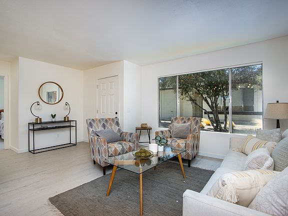 Only one left, the other apartment was leased out. Fully renovated, modern and rustic, 2 bedroom, 1 bathroom unit just 3 miles from the village and the park. This facility has beautiful open desert and hillside views on two sides! As you enter you will notice a spacious great room with space for a large living room, dining area and an L shaped kitchen. The kitchen is beautiful with a tasteful backsplash, new cabinets and countertops, and stainless steal appliances. The bathroom has been fully redone with all new fixtures throughout. You'll find good size bedrooms with a lot of closet space. Outside, the unit has its own, good-sized fenced in area waiting for your green thumb, your pet, your patio furniture or all of the above! Not only has the unit been beautifully renovated but all electrical and plumbing fixtures have been updated, new vinyl plank flooring sits throughout and a mini-split system has been installed for your comfort in all seasons. The courtyard has been beautifully landscaped with areas to sit and enjoy. There is plenty of off-street parking in the front parking lot, a good sized, updated laundry room and each unit has its own storage room on site. Don't miss out! Please make our appointment to see it today! Landlord pays for water and trash. Tenant pays for electrical, gas, and internet. No smoking is allowed in the units. Dogs up to 50 pounds are allowed. Minimum 6 month rental required. Renters insurance is heavily advised.