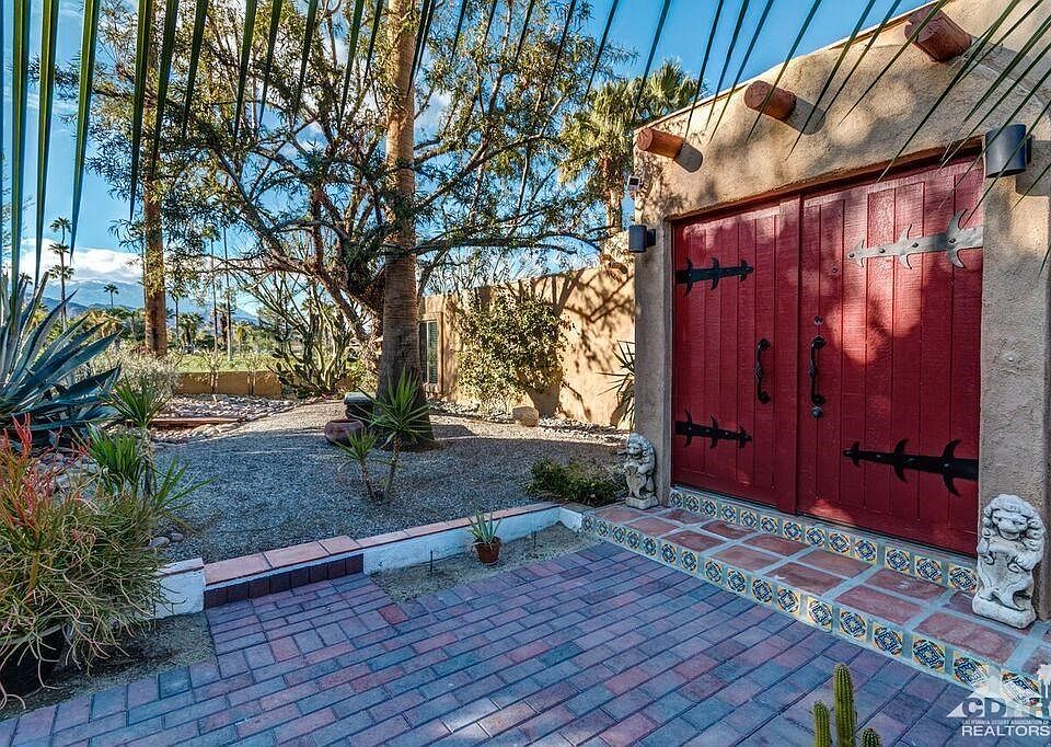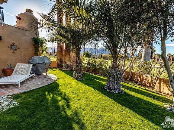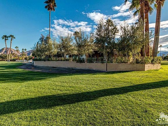 HUGE PRICE REDUCTION!!! Enter this property through your own private secluded driveway and you will feel the privacy and tranquility of this South Palm Desert home. Home is surrounded by patios designed with desert landscaping, rose garden, fountains, lawns, palms and plenty of overflow parking. Walk thru the formal entry with hacienda style flooring, vaulted ceilings in great room with a powered skylight that opens to view the stars. Beautiful panoramic views of the fairways and mountains are yours. Home has two fireplaces, one in family room and a two sided open fireplace in the great room. Spacious owner's master suite plus a 2nd master bedroom. There is an additional over sized room that can be a den, office or third bedroom. All bedrooms face gardens & fairways. Kitchen has granite covered island and counters and opens to great room. This home is perfect for entertaining and 4 blocks to world famous El Paseo for the best in dining and shopping. Large RV garage plus no HOA fee's!
