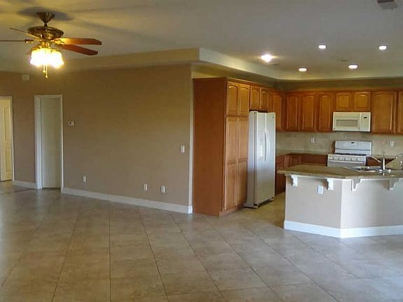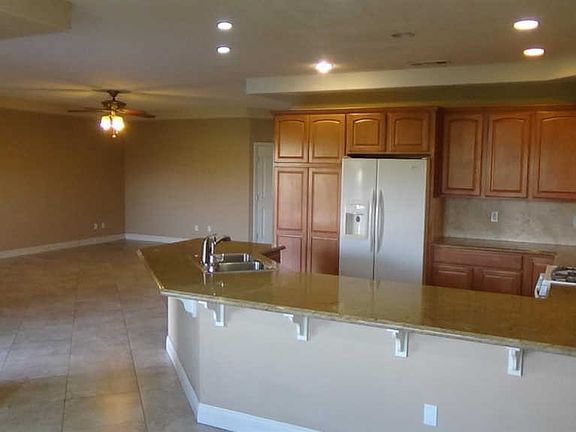 3 Bedrooms, 2 Baths. Open Floor plan. Granite Kitchen counters. Upgraded kitchen cabinets. Recessed lighting. High ceilings. Tile floor throughout except bedrooms. Separate jacuzzi tub and tiled shower, duel sinks in Master Bath. Walk-in closet in Master Bedroom. 3 car finished garage. Golf course views.