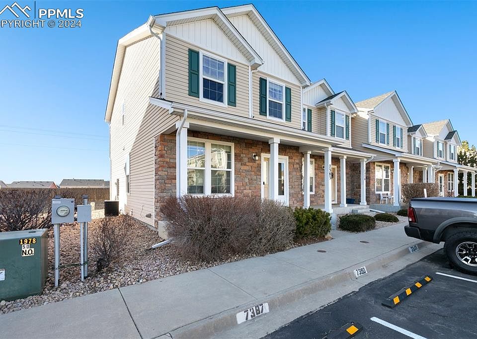 This is the gem you’ve been waiting for!!! Welcome to your gorgeous new home in the Countryside neighborhood. As you walk through the front door, you will immediately be pulled in by this cheerful living space with tall ceilings and fresh modern paint finishes. A spacious living room connects seamlessly into the dining space with an adjacent powder bath. A spacious kitchen featuring ample cabinetry, beautifully updated cabinets/backsplash, huge island, granite countertops and stainless-steel appliances greet you next. Don't miss the vast space behind the unit, a rarity in a townhome! Upstairs, you’ll find the primary suite and you’ll be taken in by the expansive space, the large en-suite bath with stunning luxurious master shower and large walk-in closet. Two additional generously sized bedrooms and a full bath complete this perfectly laid out townhome. Conveniently located just minutes to I-25, 115, Hwy 24, Fort Carson, the World Arena and the many other local conveniences, this home will give you great access no matter where you’re headed. Come see this lovely unit today!!!