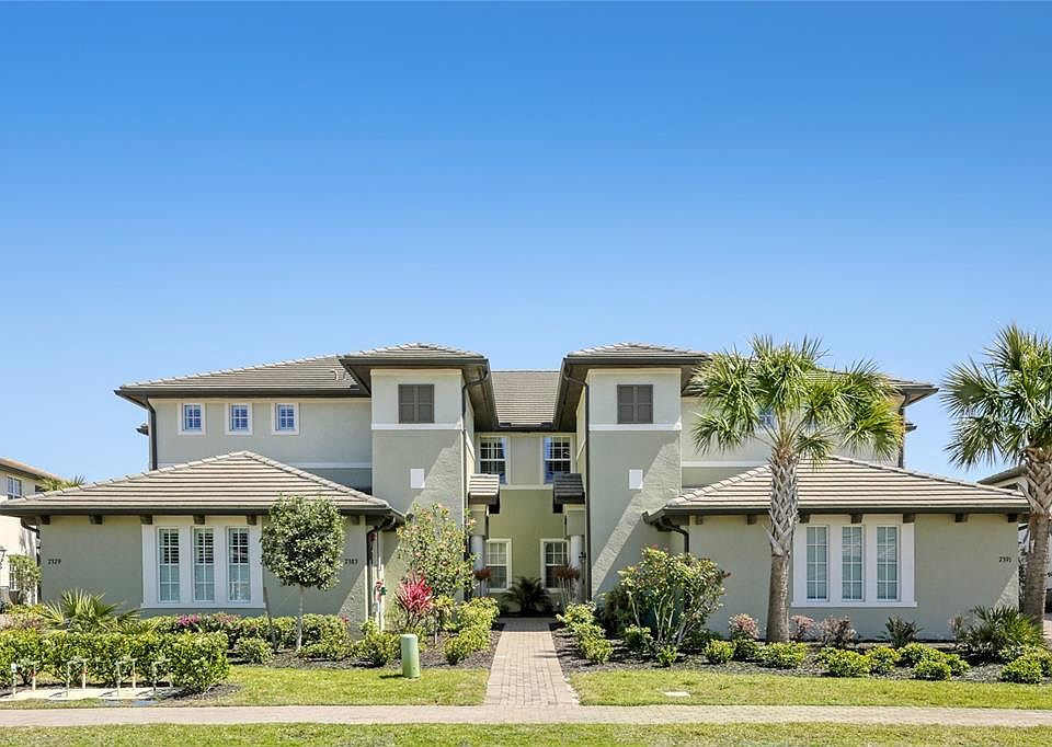 Welcome to your new spectacular condominium in Clubside at Country Club East in Lakewood Ranch. The Montserrat model by Lennar offers 3 bedrooms plus a den, 2 baths and is a second floor “Coach Home”. It is a true split floor plan with the primary suite at the back and the secondary bedrooms up front. This home has been meticulously cared for and the spacious interior has a flowing open concept with designer tile flooring throughout. The great room with high ceilings with crown molding is perfect for entertaining. The large island with counter seating for up to six people can be used for casual dining. The abundant cabinets, walk in pantry, quartz countertops and stainless appliances make the kitchen an excellent spot to oversee family gatherings. The generous dining area is a great place to host events before retreating through the hurricane impact sliders to your private spacious lanai. The oversized lanai offers a panoramic water and preserve view with no neighbors above you. The owner’s retreat is separate and has direct access to the lanai with an en-suite bath with dual sink vanities, a walk in closet and shower. The secondary bedrooms are both spacious and share the guest bathroom. Plantation shutters are present throughout the home and ship lap adorns the great room and kitchen wall, the kitchen island and the laundry room. Downstairs there is a perfect spot to add an elevator and a two car garage with a tankless water heater. The ADT security system is included with the home. Clubside offers maintenance free living with a pool and fitness center located nearby at The Retreat and two additional pools inside this gated resort type community. There is optional membership in the Lakewood Ranch Golf and Country Club for social, sports and/or golf membership. The golf membership currently has a waiting list. Country Club East is conveniently located to shopping and dining at the Lakewood Ranch Town Center, the UTC mall and 30 minutes away from downtown Sarasota. The spectacular Gulf Coast beaches at Lido Beach or Siesta Key are 45 minutes away. Room Feature: Linen Closet In Bath (Primary Bedroom).