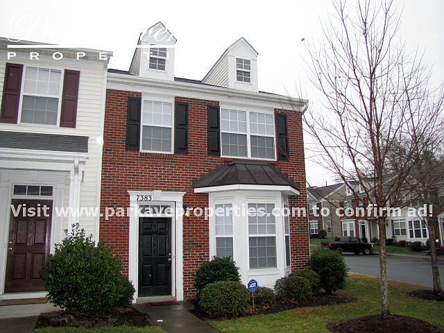 This brick-front end unit town home is move-in ready with fresh paint, new carpet, and a new stove, microwave and dishwasher! The interior is accented by gorgeous moldings and bay windows. The entry with hardwood floors opens to the combination living room-dining room, which has an arched pass-through into the kitchen with an island, a pantry and stainless steel appliances. French doors access the private patio with an exterior storage closet. Both bedrooms are located upstairs, each with vaulted ceilings and a private bath. The master suite boasts a walk-in closet, and a bath with a garden tub and a shower. Water, trash service, lawn care and access to the community pool are included. This location off of Shopton Rd is very convenient to I-77, I-485 and Charlotte-Douglas International Airport!