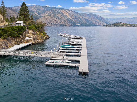 For sale by the original owner, this quality custom-built home is located in the Chelan Ridge Community Waterfront neighborhood. Enjoy the spacious great room with laminate hardwood floors & window wall with Lake Chelan views. This home is perfect for entertaining with plenty of seating at the kitchen island & slider to the spacious garage-rooftop deck. A cozy fireplace in the living room is flanked by built-in bookshelves. The primary bedroom suite includes a walk in closet & a corner jetted soaking tub. The large family room is on the lower level, along with 2 guest bedrms, a full bath & an attached 2 car garage, Amenities include a swimming & picnic area, restroom & day use boat dock; a public boat launch is less than 1 mile away.