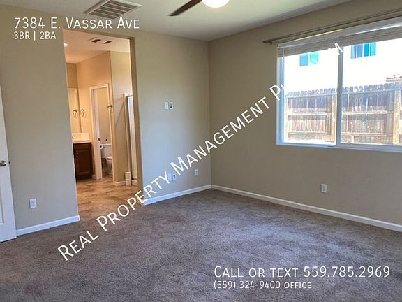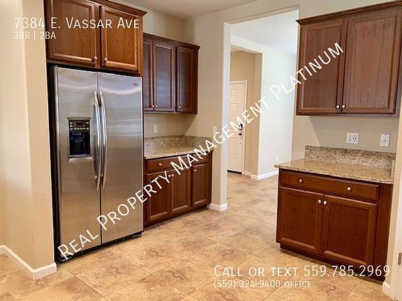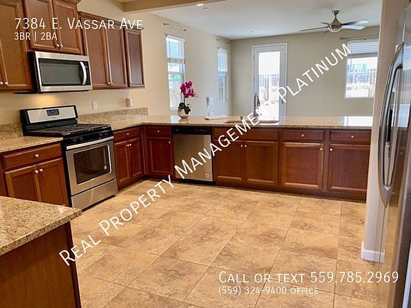 MOVE-IN BONUS: $500 off first month's rent! 3 Bed/ 2 Bath, 1890 sq. ft. Built in 2018. Tile flooring throughout, carpet in bedrooms. Kitchen has granite counters, stainless appliances, gas range/oven, microwave, dishwasher, pantry and long breakfast bar. Opens to the great room with backyard access. Flex space at the front of the house. Main bedroom has a ceiling fan and walk in closet. Main bathroom has dual vanities and shower. Hall bath has dual vanities, and tub/shower. Two additional bedrooms. Interior laundry leads to the attached garage. No Refrigerator, washer & dryer hookups. Tenant in charge of yard care. Enjoy the benefits of solar panels. Tenants responsible for utilities & tru-up. Credit score above 650 REQUIRED. No smoking. Pet considered with additional pet rent. Clovis Unified School District. Renter's insurance is required. DRE# 01901101. All information is deemed reliable but not guaranteed and is subject to change. Non Smoking Renters Insurance Required