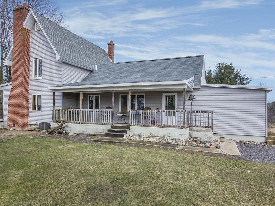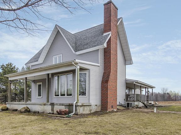Nicely newer remodeled 2 story farm home situated on 3.2 acres in Edmore, complete with a pole barn on the property that resembles another home, complete with heat, 110 & 220 amp power, kitchen, work bench area, lots & lots of storage, all cement floor, wood stove, propane heat & much more. The 2 story home has remodeled kitchen and main floor laundry, all appliances to stay. Very open formal dining leads to living room with gas log fireplace and surround windows to give you views of whats going on on the property. Two beds, one full bath on the main, 2 more spacious bedrooms up, Michigan basement, but dry and very clean, with mechanical and also plenty of storage. great covered side porch off the home, 1 stall detached garage also on the property.