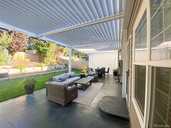 Welcome home! Nestled in the highly coveted Homestead neighborhood of Centennial, this immaculate home offers convenience at your fingertips. With its close proximity to the acclaimed Cherry Creek School District’s Homestead Elementary, homeowners enjoy the comforts & conveniences this popular community has to offer. With one of the most versatile floor plans in the neighborhood, you'll enjoy the open concept flow & numerous amenities this home offers. The family room stands out with its exposed brick fireplace and patio door off the kitchen that leads to the expansive patio with an all-season pergola, creating a fun & enjoyable ambiance. The custom white chef's kitchen is inviting & has everything you could need, including high-end stainless steel appliances, a wine refrigerator, large kitchen island, built-in desk area, smart-home system & built-in kitchen nook seating area. The numerous functional spaces in this home including an open concept living room and kitchen flow, 2 living room spaces with one a deck attached for expanded entertaining, as well as main floor bedroom that can be used for an office. Upstairs, discover the primary suite with a spacious bath that includes a large soaking tub, steam shower & double vanity. The fully finished basement is an entertainer’s delight, offering a theater space, an open game or rec area and a 5th non-conforming bedroom with ensuite bathroom. The seller has spared no expense in creating an oasis of lush garden living in the private backyard. A newly added covered patio, large garden area add to the already lovely backyard that is located on the greenbelt providing easy access to the pool and tennis court amenities. Many upgrades have been made over the years, including newer wood floors, newer furnace, newer siding with newer paint and a newer tile roof. Socialize with your neighbors at the pool, pickleball or tennis courts. Enjoy this home's close proximity to DTC, Fiddler’s Green, Park Meadows, I-25 & parks!