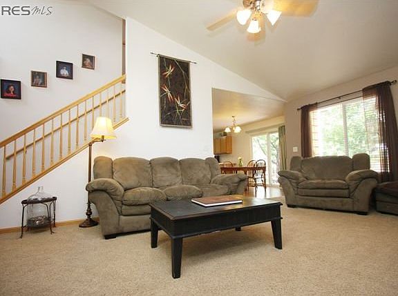 Beautiful 2-story home in Wellington! Brand new carpet & well cared for home. Large living room offers vaulted ceilings & gas fireplace. Dining room opens up to kitchen & has laminate flooring w/ lots of counter space & cabinets. Downstairs has large family room w/ bedroom & 3/4 bath. Upstairs includes two bedrooms, full bathroom & master suite. Master bedroom has its own full bathroom w/ huge walk in closet. Gorgeous backyard w/ extended patio, sprinkler system, dog run & 6' privacy fence