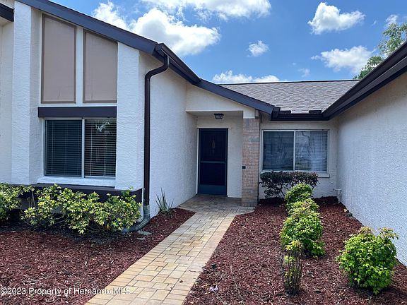 The beautiful Heather Community has about 800 units in its entirety and is located in Hernando County (west coast of Florida). It is made up of Single Family Homes, villas (Heather Walk), condos (The Fairway, The Bluffs & the Greens), THIS IS NOT AN AGE RESTRICTED COMMUNITY. This sweet, well maintained villa is located in HEATHER WALK and is PET FRIENDLY. home is move-in ready and consists of 2 bedroom split plan, 2 bathrooms, living room, family room (12 x 19) and a 1-car garage. It is one level and boasts 1499 square feet of living area; Kitchen has been totally remodeled with quality wood cabinetry, granite counters and newer stainless appliances; Separate laundry room area includes washer and dryer; kitchen has a cozy breakfast nook; This village of Heather Walk has its own private, heated, salt water pool & spa (very close distance to home). In addition, there is a huge screened in sunbathing & dining area; both bathrooms in home have been updated and upgraded with granite counter tops; You will never have to deal with the drudgery of outside maintenance as this is all taken care for you for $403/month; This fee also includes basic cable TV, internet and homeowners insurance for the exterior of the building. It also includes the water to irrigate your lawn and landscaping; The Master Association of the Heather takes care of all the common areas, ponds, security and employs a waver/greeter at the gate house located at the entry for only $24/month. There exists a RV and/or Boat Storage Center for a small fee. The Heather also has a large community center and has many social activities at all times, i.e., Bingo, Bunco, Line Dancing, Ballroom Dancing, Yoga, Craft & sewing classes; The Heather also offers an optional public Executive Style 9 Hole Golf Course at a very reasonable price; The Heather is conveniently located to ALL shopping, restaurants, doctors and hospitals; Seller is offering a 1 YR FREE HOME WARRANTY TO the new owner; Just 5 minutes-Weeki Wachee Springs (live mermaids, water park, kayaking & canoeing); 15 minutes-Rogers Park (fishing) and Pine Island Beach; 1 hr-Tampa Intl Airport; 1.5 hrs-Clearwater/St. Pete Beaches; 2 hrs-Orlando theme parks;