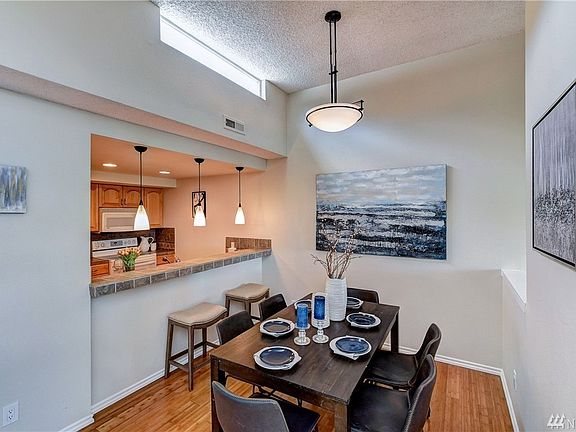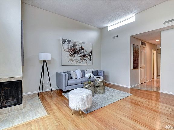 Discover elevated living in this private top-floor condominium boasting panoramic views of the Cascade Mountains and Redmond. Nestled among lush trees and manicured gardens, this serene retreat offers the perfect balance of nature, comfort, and convenience just minutes from downtown Redmond and a short drive to major employers like Microsoft, Nintendo, and Honeywell. Enjoy effortless access to the new Redmond Light Rail Station just minutes away, and reach downtown Seattle in just 25 minutes by car. Step inside this bright and spacious 2-bedroom home, thoughtfully designed with soaring high ceilings and abundant natural light year-round. The open layout includes a designated dining area and a kitchen counter bar perfect for entertaining or casual meals. Premium interior features include: Luxury hardwood flooring throughout, Cozy fireplace, In-unit washer and dryer, Jacuzzi tub for ultimate relaxation, Private balcony with breathtaking mountain and city views, as a top-floor, corner unit, you'll enjoy extra privacy and tranquility. Community amenities add to the appeal, with access to a private swimming pool for warm summer days. The unit also comes with a dedicated storage unit, covered carport, and ample guest parking ideal for hosting friends and family. Don't miss this rare opportunity to enjoy panoramic views, peaceful surroundings, and unbeatable access to both nature and city life all from a premium location in Redmond. Water, garbage and sewer services are already included as part of rent payment. Renter is responsible for gas and electricity. First and last month's rent due at signing, along with security deposit. No smoking allowed.
