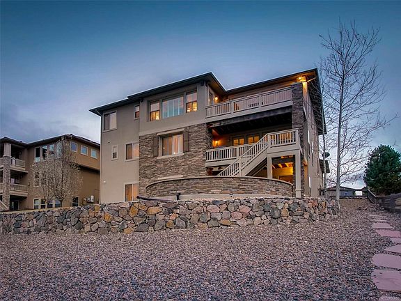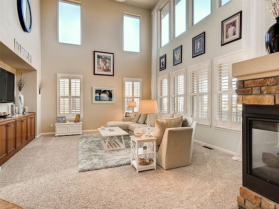 Breathtaking views of the mountains Just steps away from community trails & in the award winning Cherry Creek School District, this home is absolutely incredible. The extremely popular Toll Brothers, Belford model, features a stylish stone exterior turret, open gourmet kitchen w/ granite slab countertops, huge island, and stainless steel appliances, planning desk, butler's pantry and a large extended deck with spectacular mountain views. Kitchen overlooks 2 story great room w/ 3 sided custom fireplace, wonderful windows & built in cabinets that open to covered deck, perfect for entertaining. Upstairs living has private master retreat w/ private deck, master bath w/ lg walk-in closet & two large bedrooms w/ Jack & Jill bathroom. 10' Ceilings in wonderfully expanded finished walk-out basement w/ wet bar, large bonus room, bedroom & bath. All this & views of the Front Range. 2 A/C units, 2 furnaces, hot tub,3 car split garage.