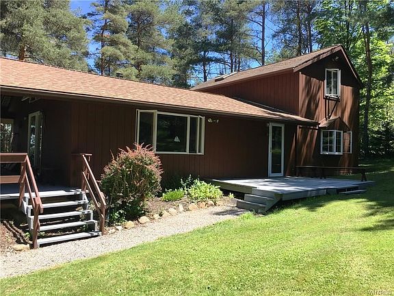 Your private getaway! Very close to Buffalo Ski Club and Kissing Bridge. Rustic lodge-like home with massive beams, open floor plan, large covered porch, upstairs room 24x16 ideal for home office, art studio, etc. Texture T111 siding, Andersen windows, 20x20 garage, all appliances stay and washer & dryer. Plus a wood stove. Gorgeous one acre pond, city water, Orchard Park Schools. No Showings until March 19, 2019.