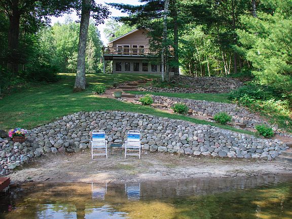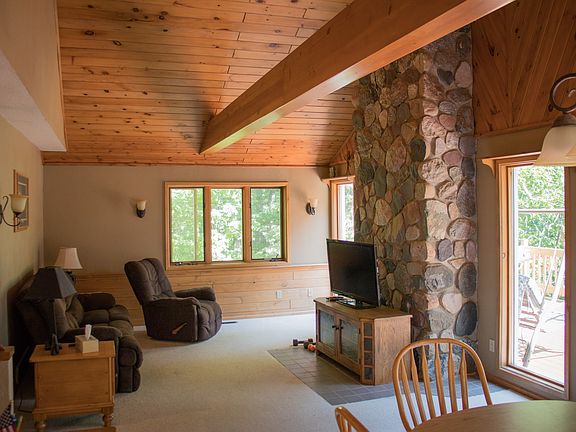 Seclusion and solid sand frontage are what you will find at this 3+ bedroom, 2BA home on crystal clear Squash Lake. The home's main level features a galley kitchen, adjoining dining area w/ deck access, laundry, a full BA, 2/BD, and the lake-facing living room w/ tongue & groove vaulted & beamed ceiling and an impressive fieldstone backdrop for a wood or pellet stove. The LL provides a second full BA, third BD, sauna, bonus room, and a family room w/ brick woodstove backdrop & direct entry to the 10'x28' lakeside 3-season room. The exterior enjoys an expansive deck for relaxing & BBQ-ing while overlooking the water, 3-car detached garage, additional parking space, and a landscaped shoreline w/ an expansive sand beach. Set on wooded a 2.43 acre lot with bay frontage, the property remains private with little boat traffic yet offers immediate access to Squash Lake's 398 acres of boating, kayaking, fishing and all that a fully recreational lake offers.