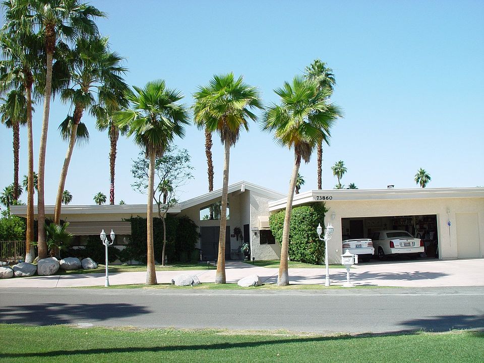 Magnificent Single family Home (NO HOA'S) on a Private Street on the golf course with Mountain and Golf Course Views includes (3) beds (3) baths all upgraded with high end materials Den- Living room Dining room- Outdoor Kitchen, Pool, Waterfall, Spa, Fire Pit , BBQ grill. Furnished with Eight citrus trees on the grounds.An Extremely rare find on this very private dead end Street. Hurry this wont last long. Third garage for golf cart. Close to El Paseo all shopping Restaurants entertainment . Back yard completely fenced in for your privacy.