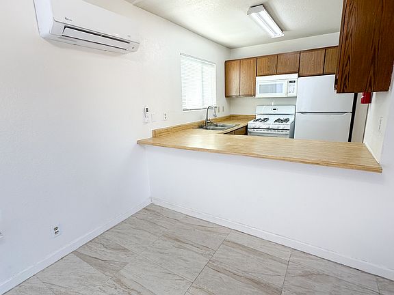 This is part of a quiet 4-unit complex. A well-maintained complex near the Marine Base is available for rent. It has large two bedrooms and 1.5 bathrooms. The ceiling is vaulted and tiled throughout, and a new efficient mini-split AC exists. The unit has a dishwasher, over-the-stove microwave, Fridge, and Stove/oven. There is laundry in the common area. The backyard is fenced.