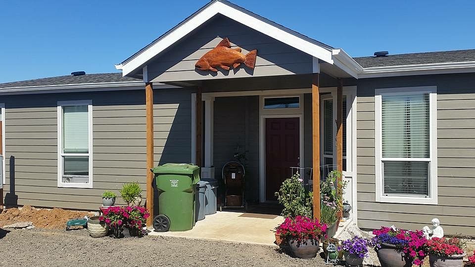 Beautiful manufactured home with lots of upgrades. Gourmet kitchen with double wall ovens, 5-burner propane cooktop with an electric pop-up down draft fan. Corian countertops throughout the kitchen as well as the bathrooms. XLarge stainless steel farmhouse sink is located below a large kitchen window with views of Mt. Hood and Mt Adams. The Kitchen has lots of cabinets and drawers. The cabinetry is knotty alder with custom slide-outs throughout for easy accessibility. The kitchen also has an extra large kitchen island with lots of cupboards and drawers, and easily seats 5 people. A large pot rack hangs above the kitchen island, and is centered between two skylights, which adds wonderful light to the cooking area and kitchen. The kitchen also boasts a large walk-in pantry. Solid alder interior doors throughout are 36” ADA compliant. The dining room has French doors that open to a large covered deck, which can be used all year long. The master bedroom is spacious and large with 4 windows, and plenty of room for lots of furniture. It has an extra large walk-in closet with built-in shelving and room enough for seating. The master bath has a large oval jetted tub surrounded by tile, a large walk-in shower with 2 seats, double sinks with lots of cabinetry storage, and a separate toilet room that easily accommodates a wheelchair. Two additional large bedrooms located on the opposite end of the home, and both have walk-in closets, and a full bathroom nearby. The laundry room is large, and has plenty of room for a freezer, as well as a laundry sorting/folding/hanging area. The back door of the home is located in the laundry room, and opens to the large deck. The entryway and living room are spacious, open and large. Crown molding throughout the main living space. Custom baseboard trim of hard rock maple and alder throughout the home. 2100 square foot shop located on the property. Has a bathroom and beautiful stainless sink/counter area. Great for fish cleaning and preparation. Also has a pellet stove for heating in the winter. Entry doors on each end, and 3 roll-up doors to park your car or boat.