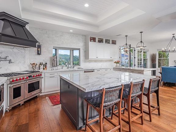The Crown Jewel of Barrington Place – Exquisitely Remodeled with Unmatched Golf Course Views. Welcome to the epitome of luxury living in the prestigious, gated community of Barrington Place. This fully remodeled masterpiece is the only home of its kind in the exclusive 21-home community, thoughtfully redesigned with high-end designer upgrades and finishes—and offering the best unobstructed views of the Omni La Costa golf course. Step inside to soaring ceilings, gleaming hardwood floors, custom lighting, and an open floor plan that blends elegance with everyday functionality. The living space is anchored by a statement fireplace, while the Pinterest-worthy kitchen is a chef’s dream—featuring a Wolf 6-burner range with a stunning custom hood and pot-filler, Thermador built-in refrigerator, dishwasher and warming drawer, elegant marble countertops, custom backsplash, and a spacious center island. All of this is beautifully framed by panoramic golf course views from the kitchen sink and beyond. Upstairs, the lavish primary suite offers its own private retreat with a cozy sitting area, wet bar, and a private deck overlooking the fairways. The spa-inspired primary bathroom is pure luxury with a soaking tub, dual-headed walk-in shower, expansive walk-in closet, dual vanities with marble countertops, marble flooring, and a sparkling crystal chandelier. Additional features include two generous upstairs bedrooms and an optional fourth bedroom on the main floor—perfect for guests or a home office. This is more than just a home—it's a rare opportunity to own a truly one-of-a-kind residence in one of the area's most sought-after communities.