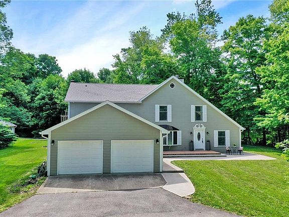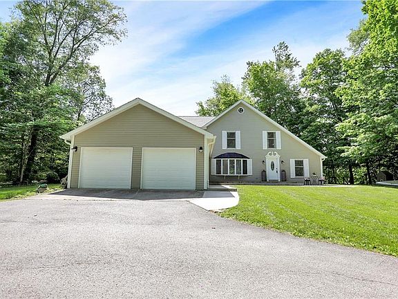 Beautiful 2 story home on 5 acres of wooded land. Walk into gorgeous hardwood floors, newly updated kitchen, and cathedral ceilings. Sip your coffee on the front deck in your thoughtfully landscaped front yard, or on the beautiful, stamped backyard overseeing the beautiful creek. Master Bedroom 22X24 Deck with new 7-person spa hot tub. Buck Creek flows behind the property, access to the creek and new water retention installed with newly poured sand. Features include 2 wood burning fireplaces, updated master bedroom suite with newly remodeled master bathroom. . Stainless Steel appliances, granite countertops. 2 car attached garage plus a 1 car detached garage, and a 56 x 36 barn. The possibilities for enjoying your new home are endless.