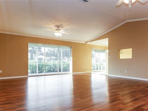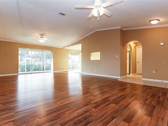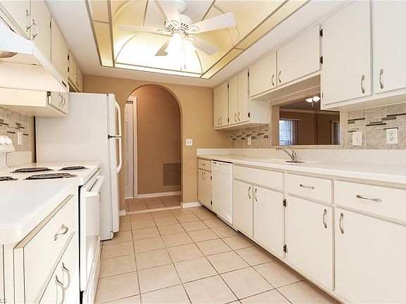 Great San Carlos rental home featuring vinyl and tile flooring. The kitchen is equipped with a refrigerator, range, and dishwasher, ceiling fan and backsplash. The master bathroom is outfitted with a dual basin vanity and walk-in shower. Enjoy evenings on your very own screened lanai.