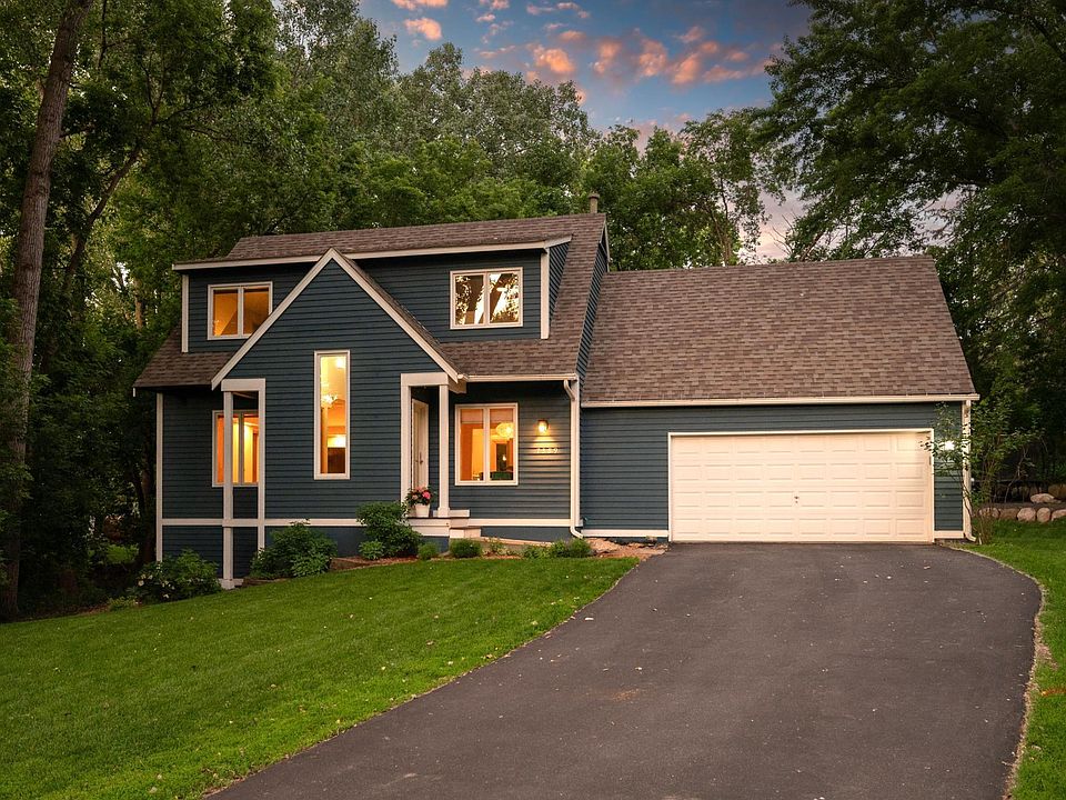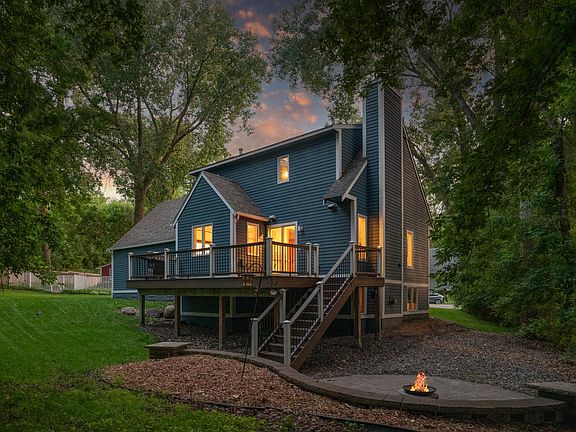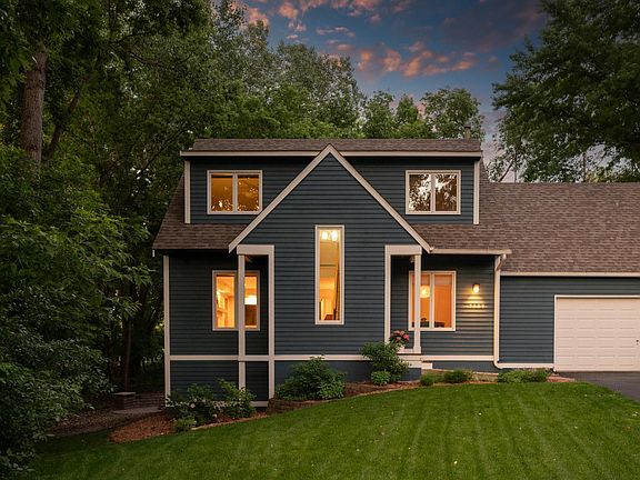 Stylish, modern home on cul de sac and large lot! Step inside to appreciate the design features like the large windows that brighten the space and bring you close to nature. Open concept main level. Bright living room with wood-burning fireplace and built ins. Open kitchen with loads of counter space, stainless appliances, island. 3 bedrooms up, primary suite with 3/4 bath with tiled shower, lots of updates. Large lower level family room with gas fireplace. Enjoy the large deck and paver patio in peaceful backyard. Close to Round Lake Park, Eden Prairie Community Center, shopping and all that Eden Prairie offers.