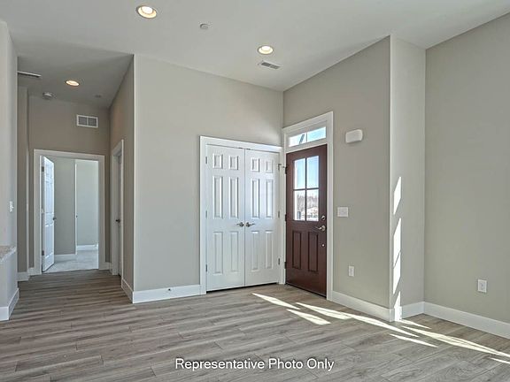 This 1-story end-of-row townhome includes a 2-car garage and 10ft ceilings.. Stylish vinyl plank flooring flows throughout the main living areas. To the back of the home is the spacious owner's suite with expansive closet and a private bathroom with double bowl vanity and 5' tile shower. The kitchen is well-appointed with stainless steel appliances, attractive cabinetry, and quartz countertops with tile backsplash. The family room, with a vaulted ceiling and cozy gas fireplace with stone surround, provides sliding glass door access to the rear deck. An additional bedroom, full bathroom, and carpeted study are located towards the front of the home. Amenities: Daylight Basement