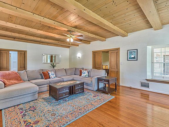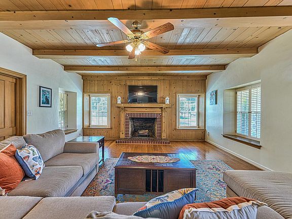Quality touches of the past and tastefully modernized over the years to maintain its original elegance and charm, this 2300+ sf 3 bed, 2 bath home is sure to please. Situated on a lg. corner lot in a quiet established neighborhood, its location is within walking distance to schools, medical services and more. Many large dual pane windows flood the interior with natural light. Wood and art deco tiled flooring provide a warm vibrant continuity to the interior space. Custom pocket doors & open beam ceilings add to the home's warmth & richness. Both the expansive LR & library/office/sitting room have custom fireplaces. Enjoy Silestone counters, oodles of storage space, SS fridge, oven range & a new vent hood found in the spacious kitchen. The primary bedroom offers dual closets and dressing area complete with vanity & custom floor-to-ceiling built-in drawers. A partially finished basement offers additional storage. Current owners had the home's electrical updated/rewired, added a CCTV camera & security system and networked internet cabling in several rooms. Understated landscaping adda a stately elegance to the home's exterior. A private brick walled back courtyard connects the home to the detached garage while offering a great spot for outdoor enjoyment w/ family & friends.