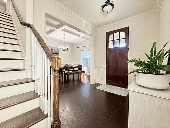 This elegant home offers a fully fenced backyard and a spacious covered porch, perfect for outdoor entertaining. Enjoy formal gatherings in the stunning dining room with a coffered ceiling, and relax in the inviting living room with a cozy fireplace. The main -level primary suite provides comfort and privacy, while four additional bedrooms and an upstairs loft offer flexibility for quests, work or play. Updates : New HVAC(2019), Exterior paint (2020), New fence (2020),New roof (2021), updated hardwood flooring in all rooms (2021)