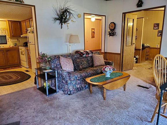Two bedrooms floor plan with two full baths. Main living area with living room, eat in kitchen, three season enclosed porch, and den which could easily be a third bedroom if needed. Master suite offers walk in closet, washroom, and separate bathroom area with step in shower. The second bedroom, offers double closets, and next to second full bath. Large car port for two vehicles and shed. Park rent includes land use fee, water, sewer, property taxes, rubbish, master insurance, and use of all park facilities including season indoor pool, work out room, banquet hall, and rec room. Seller has never lived in home. Listing agent related to seller. Property is an estate sale being sold "as is". (Roof may need some repair on front corner, car port cement pad has cracks that need filling). Call Lee to schedule showing. Seller will pay three months rent for new owner.