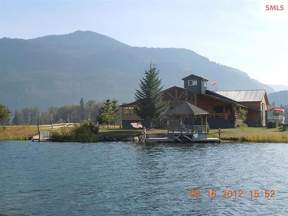 Fully furnished, and Owner Financing available for this beautiful Clark Fork River front property, with two private air strips (2700' and 3300'), all on a private island! 3 boat docks and a ramp, gazebo and 120' of waterfront on the trophy fishing deep channel, just feet from Lake Pend Oreille. With a 2500 sq' heated hangar/shop with 42' Schweiss door, taxi out to the adjacent runway. Hangar also has 12'x13' hydraulic RV door, 10'x10' garage door, storage and work space, and separate bathroom. The open kitchen has high end stainless appliances, propane cooktop, quartz countertops, walk in pantry, and beautiful cabinets. The Dining area is large enough to seat 10 or more, or enjoy dinner with a view on the covered redwood wrap-around deck. The Master bedroom is spacious, and open to the hot tub/sun room. The loft offers space for guests. Hidden above the loft is the Crow's nest, with views of the airstrip, river, and surrounding Cabinet Mountains.