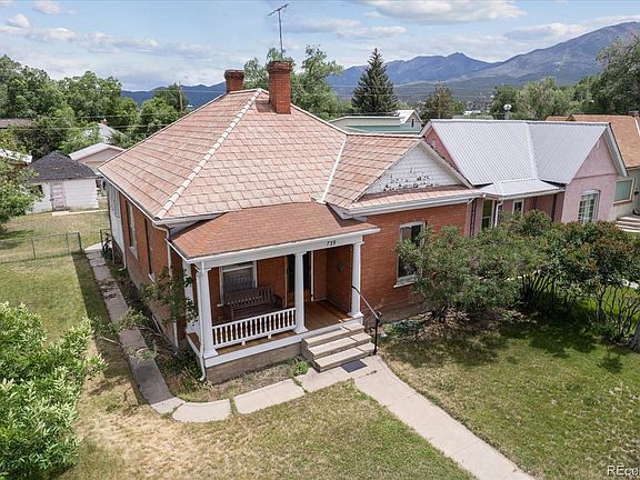 Preserved in time, historic home. This sweet house is still in it's "simple swing on the front porch" era. Originally built in 1911, you can see the care that was put into the craftsmanship. The exterior is beautiful four-sided brick with a slate roof. The covered front porch is in great condition with solid wood floor and sturdy columns. Inside has been impeccably cared for. The living room has over 300 sqft of hardwood floors that also carry into the two bedrooms. The stately trim around the windows and door frames, the baseboards, and the solid wood doors are a classic finish that will look great with any modernized updates on this home. Wallpaper lines the walls of the bedrooms as if it was installed weeks ago. As was fairly standard for the time this house was built, there is only one bath off the kitchen. There is storage available where there is any room to put it. Vintage appliances are left in the kitchen. It is a spacious room with really simple and efficient cabinets and counterspace. There is a laundry room and a small butler's pantry off the back of the house. Classic to these homes, you will find the cellar access in the back beside the concrete steps down to the sidewalk. It's all very clean and ready for you to give it a facelift or leave it as is for years to come. The yard is big enough to add an ADU or detached garage. An existing single door detached garage is by the alley, which is currently great for extra storage or shop space. This property is located at E St and 8th, only a few blocks from downtown Salida. Easily walk or ride a bike to the shops and restaurant the city has to offer. Of course, Salida is surrounded by mountain recreation including the Arkansas River that cuts through the heart of the city. It is a wonderful place to call home!