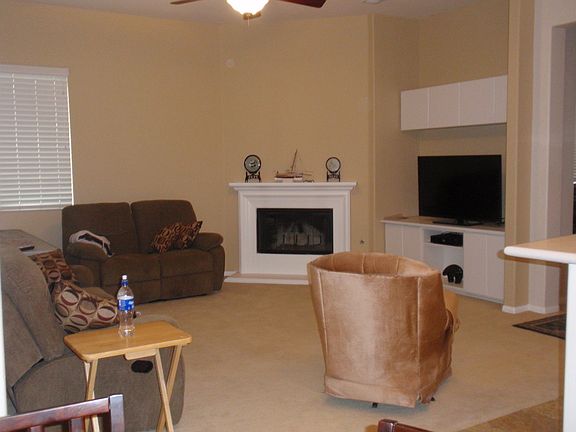 This single story home is 2410 sq. ft. with 4 bedrooms, 2 baths and 3-car garage. It has Living and dining room, large kitchen open to family room with fireplace. Kitchen includes double ovens, stove, refrigerator and dishwasher, a nook and island completes this family kitchen. An inside laundry room has utility sink and overhead cabinets. The large master bedroom has beautiful master bath with shower and separate tub and a very large walk-in closet. Other bedrooms have large mirrored closets. Windows have wood style blinds. Front and back yards have installed sprinklers. Other features include covered patio, and 10 foot ceilings.