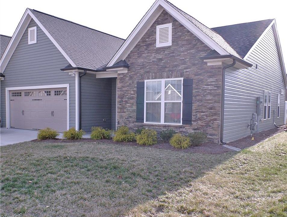Enjoy an easy living lifestyle in this one level townhome, with 2 car garage! Like new with 3 bedrooms and 2 full baths. Upgrades include granite in kitchen, stainless appliances - including the refrigerator, gas logs, and fenced patio area with Sunsetter retractable awning. The washer and dryer are included too! Hurry and tour this home, it won't last long!