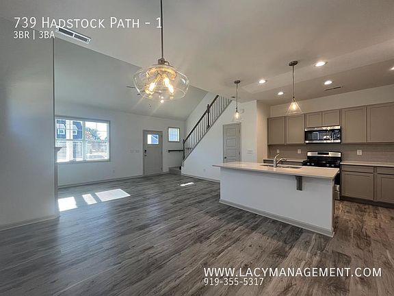 This 1608 square foot townhome home has 3 bedrooms and 2.5 bathrooms. This home is located at 739 Hadstock Path #1, Zebulon, NC 27597.