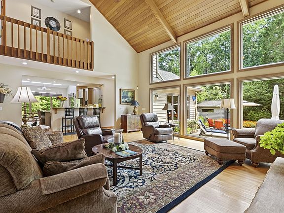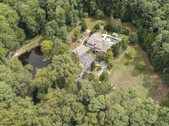 Excellent location!!! 12.56 acres. Custom home! Main floor owners suite looking out at refreshing garden side pool, extra large bedroom on main floor for guest w/full bath & gorgeous views. Natural light flows through home. Vaulted tongue and groove ceilings, stone FP. Chefs kitchen w/granite & stunning views, walking trail, stocked pond. Immaculate well taken care of & a must see in person. Hand hewn cedar & stone exterior. Lg breeze way w/drop zone. 3 Car oversized garage with floored attic. Apex address w/Chatham taxes, just min to Jordan lake boat ramp, Southpointe mall & Beaver Creek shops. Min to Chatham Park/Mosaic. Roof 2022, HVAC 2021, water heater x2 2020.