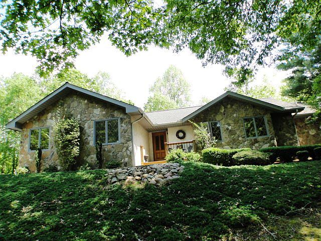 EXECUTIVE HOME IN EXCLUSIVE NEIGHBORHOOD IN FRANKLIN NC! Single Level Living in one of Franklin''s nicest homes. This home has plush landscaping all , complimented with full decks, gazebo, dog kennel, and a powered workshop. Private, quiet, and paved to the door, no need for 4 wheel drive here! This home is gorgeous, with vaulted beamed ceiling in living room, rocked fireplace, and easy deck access to the Gazebo. 2 car attached garage with easy access to the kitchen for offloading groceries in inclement weather! Huge master bedroom with Tray ceiling and walk in closet. This home is stunning!!