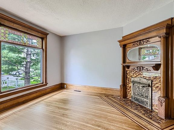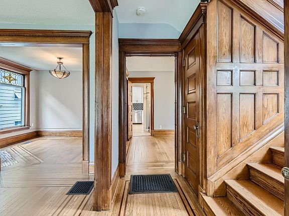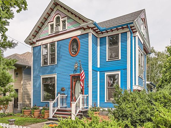 Impeccable, enchanting, historical and authentic Victorian, thoughtfully and meticulously restored and updated. Grand foyer entry with custom-carved staircase. Double ribbons of walnut inlaid in oak floors. Beveled stained glass windows in stairway, front parlor, and den. New kitchen with quartz counters, 6 burner gas range, farmhouse sink and stainless-steel appliances. Updated main full bath with double sink. Upper-level features 4 bedrooms and ¾ bath with subway tile and quartz vanity. Oversized primary bedroom with working fireplace, office/nursery, walk-in closet. 3rd floor offers huge finished bonus room. Private back yard with patio, 1 ½ car garage. Newer AC, furnace and roof.
