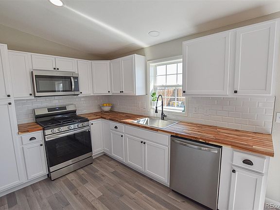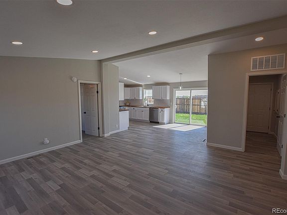 Beautifully updated home for sale in Lochbuie. As you enter your new home you will be met by a spacious open concept living room, family room, kitchen, and dining area. Plentiful windows allow in natural light to accent the exceptional finishes present throughout your new home. The kitchen is complete with brand new appliances, cabinets, and a stunning butcher's block countertop. Enjoy peace and serenity in the private primary bedroom with abundant closet space and a private bathroom with double vanity for those morning rushes. The additional two guest bedrooms and guest bathroom are located at the opposite end of the home which provides a comfortable buffer zone between the primary bedroom and guest bedrooms. The attached two car garage is perfect for keeping vehicles nice and cool in the summer and those windshields clear in the winter months. Front yard is landscaped with new sod and mulch edging. The backyard is a BBQ haven and will make a perfect entertainment space. Your new home backs up to a massive grass area outside of Lochbuie Elementary School, a back gate entrance is the perfect way to take furry friends or little ones for a walk on a nice afternoon this summer. Schedule a showing today!