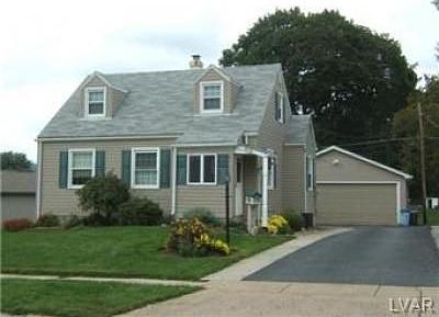 CHARMING WELL KEPT CAPE COD LOCATED CLOSE TO SAUCON VALLEY SCHOOLS & IN WALKING DISTANCE TO A LOVELY PARK, POOL & LIBRARY AREA. HOME HAS 3 BEDROOMS, MASTER ON 2ND FLOOR. IST FLOOR HAS FOYER, HARDWOOD FLRS, LR, DR, KIT & 2 BEDROOMS. ENJOY THE ENCLOSED HEATED SUNROOM FOR ENTERTAINING WHICH IS WARM AND INVITING. FULLY FINISHED LOWER LEVEL W/ FAMILY ROOM & BAR AREA, LAUNDRY ROOM.THE OVERSIZED 2 CAR GARAGE HAS EXTRA STORAGE ABOVE/ DECK & CUSTOM AWNING FOR SUMMER NIGHTS. NEWER SIDING,GAS WATER HEATER,WINDOWS. NICELY LANDSCAPED AND PARKING FOR 4-5 CARS. COME ENJOY THIS BEAUTIFULLY CARED FOR HOME CLOSE TO MAJOR ROUTES AND SHOPPING.