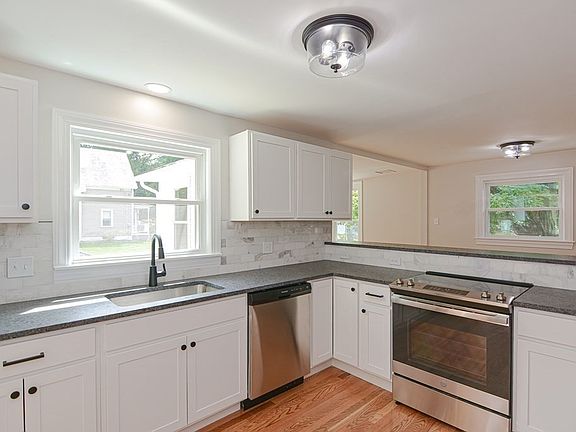 Fully remodled single level living conveniently located close to the highway shopping and conservation area! Updates include roof, windows, and new energy efficient ducted heat pump for heat and a/c. This sweet ranch offers an open floor plan with plenty of room for entertaining. The kitchen features clean white cabinetry, classic stainless appliances with an oversized breakfast bar overlooking the open living and dining room. Hardwoods continue throughout the living space and into the bedrooms. The bath features a stunning tile shower soon to be completed with a glass shower surround. This location offers the ability for a home office and the house is designed with a flexible side entrance and ample parking. The basement has plenty of space for storage plus is already plumbed for a half bath. Outside there is fresh landscaping, two new decks and even views of Pierce Pond. The driveway is off Palm Court which is a dead end road.