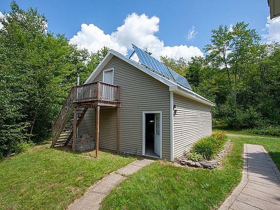(Solar panels and portions of the private road have recently been replaced/upgraded). NOTE: The zip code is for Jericho which is the post office which serves the house. The taxes are paid and everything else regarding the house is addressed in the town of West Bolton (Bolton), Vermont. NOTE: A 405 acre private hardwood forest with apx. 10,000 maples may be purchased with this home for an additional 597,000 dollars**. PLEASE NOTE: The drone footage includes some shots of this adjacent land. With spectacular westerly views of the Valley and Lake Champlain from the expansive front deck, this peaceful, modern off-the-grid solar energy home is on 10 acres to 26 acres* **, depending on the price. This lovely house is clean, well maintained with 2 full baths, an attractive modern kitchen with granite countertops & updated appliances, dining room, 3 bedrooms (including large Master BR), and a large open front porch/deck. (The house originally had 4 bedrooms.) Hardwood flooring throughout. Partially finished clean, dry basement. Propane for heat and for back up electricity. The property is steps away from the banks of Mill Brook, a rushing clear mountain stream with small waterfalls on the property and cool summer swimming holes. Move in ready. Quick closing. A must see! The adjacent land which is also for sale for additional +/- 597.000, known as "Bolton Forest", is a pristine northern hard wood forest with approximately 10,000 maples and numerous yellow and white birch mixed with beech, oak and cherry. Plentiful firewood. Most recently timbered in focal areas in early 1990s. ($290,000 dollars of wood/timber assessed to be present on the land in 2009.) Historically in the mid to late 1800s the land was the site of mountain farms with cows/livestock and the 405 acre parcel had the active saw mill site of EN Colton. Apple trees, wire fence, stone bridge abutments remain. Keep your loved ones safe nestled in the heart of the Green Mountains. This is a perfect, cozy, warm and lovely off the grid family retreat to ride out Covid 19 and play or live for years to come. The adjacent 405 acre could make a good wood lot. (forester plan estimated that 3900 cords of firewood present on the land) , maple syrup farm, private hunting grounds, back country or nordic wilderness ski resort, wilderness hut development, investment property. Older wood fired disassembled maple syrup evaporator, some tubing and taps included. Great hunting. There are miles of some of the world's best back country skiing and hiking/snowshoeing trail development possible out the back door. Long Trail Catamount Trail, Green Mountain Club Land and Bolton Backcountry and Ski Resort areas are about 1-2 miles away as the crow flies (over the ridge). Ethan Allen Firing Range is to the north of the property and conserved / public forests surround it to the east and south. The small quaint town of Richmond with shops, bakery, restaurants and historic Round Church is 8 miles down hill. Additionally, Stowe/Trapps and Sugarbush mountains are 25-33 miles away; and Burlington, with its Lake Champlain Waterfront, theaters, restaurants, airport & Church Street is only 21 miles away. Montreal lies just about 2 hours' drive to the north. BTV airport is ~17 miles away. *additional acreage possible, contingent upon appropriate boundary line adjustments. ** The 10 acre lot is contingent upon a successful boundary line adjustment; this process has been initiated. Note: Some of Zillow's information on past sales of our property appears inaccurate. Note: This property has new (December 2020) upgraded solar panels and a new monitoring system as well as other improvements including recent work on a portion of the private road.