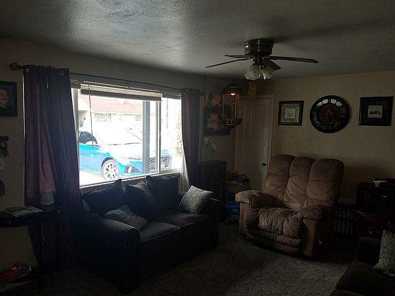 Updated single level home with separate shop/man cave, or studio apt. in the back! Great home featuring newer vinyl windows,vinyl siding, and newer roof. New carpet inside with 3 large rooms, updated bathroom and spacious laundry room for extra storage. Kitchen has french doors that open up to a nice covered patio overlooking a huge yard with multiple fruit trees (cherry, peach, apricot) and a variety of berry plants (grape, gooseberry, and raspberry).Home is located on a quiet street with plenty of off street parking on the large driveway. In back is a 315 square foot cinder block building on a separate meter equipped with a bathroom,kitchen,and 220V outlet. Could be used as a salon,workshop,man cave,studio apt.