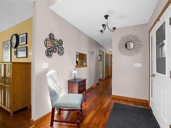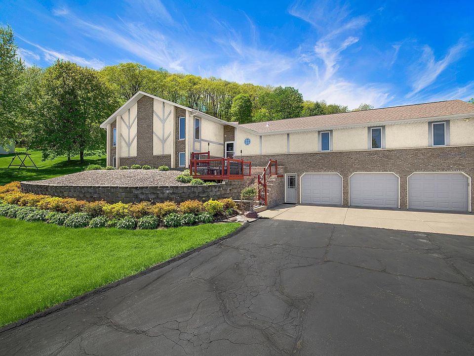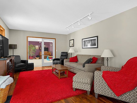 The private master suite provides a peaceful retreat, while the main level features a bright living room, dining area, and a charming three-season room. The kitchen offers center island, modern appliances, and ample storage. The lower level has three additional bedrooms, a cozy family room with a gas fireplace, and direct access to the backyard. Step outside to your own private oasis, featuring an above-ground pool, tiki hut, outdoor fireplace, and patio—perfect for entertaining or relaxing. Nestled on a beautifully landscaped 0.56-acre lot with a 3-car garage and separate shop, this well-maintained property is ready for you to call home.