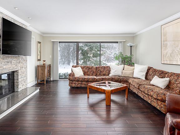 Gorgeous end unit in this completely remodeled 4 bedroom, 3 1/2 bath home in the gated community of Lake Barrington Shores. Remodeled in 2017 the home has been impeccably maintained. This home features hand scraped hardwood floors throughout the first floor The kitchen has all of the modern finishes including quartz counter tops, wine frig, white cabinetry/ glass inserts and up graded stainless steel appliances. Their is a separate spacious dining room. The huge living room features a custom fireplace with a quartz mantle and a window wall with patio doors viewing a wooded area. The first floor also features a large bedroom with its own full bath. The second level features 3 additional large bedrooms, a hallway full bath that features a marble floor & quartz counter and a laundry closet. The huge primary bedroom has a wood burning fireplace with a Brazilian schist mantle, large windows facing the wooded area, and a full bath with marble counters. The basement has a massive rec room which features a wet bar, 1/2 bath, electric fire place and good storage. The home is situated at the end of the cul de sac and in a 2 unit building, surrounded by wooded area on 2 sides. As an end unit there is added degree of privacy. The safe and the freezer stay. Lake Barrington Shores is a 510 acre gated development offering a magnificent 96 acre lake that affords resident boating, fishing, sailing, swimming or simply relaxing on the beach. In addition there is a private 3 mile pathway winding thru 36 acres of forest preserve. There are also both asphalt and clay tennis courts, and pickle ball courts. You will also have access to an indoor and outdoor pool. The "Lodge", which has recently been updated, features a work out facility and rooms available for use by the residents. Whether you are looking for an active lifestyle or serene retreat, Lake Barrington Shores offers and array an amenities to meet those needs.