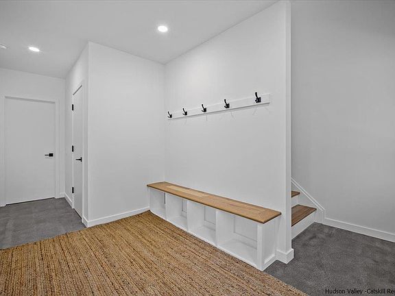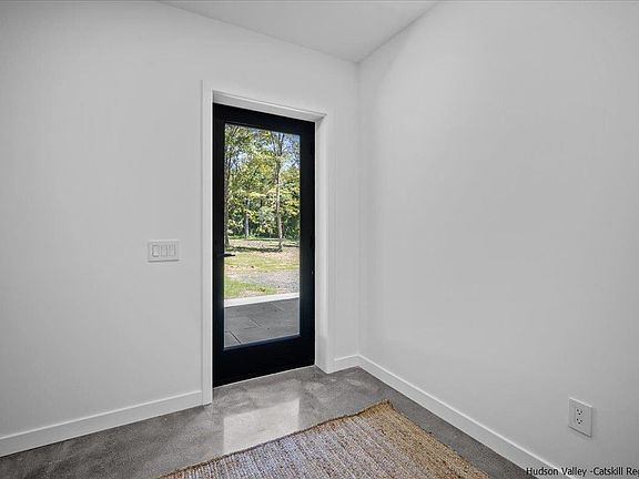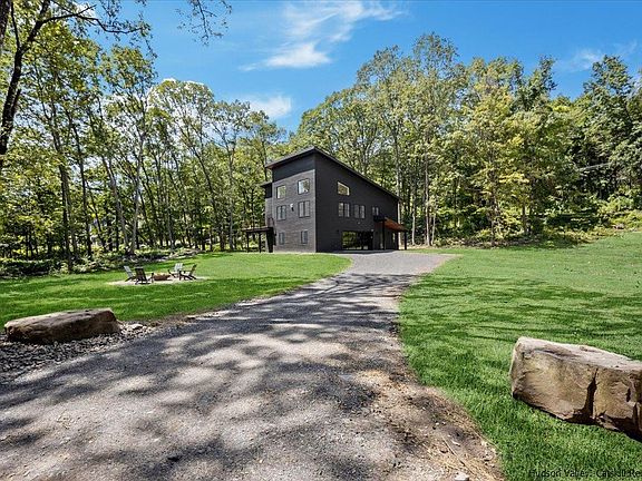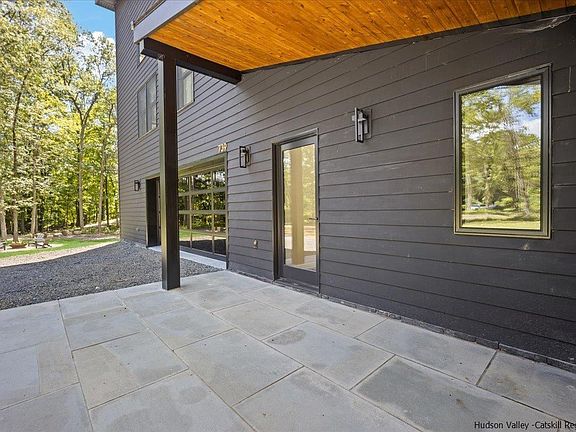 The perfect combination of contemporary design, energy efficiency and upstate living. This home radiates a special feeling from the moment you pull up the driveway. Thoughtfully designed from the ground up this new home was built with insulated concrete form construction, a metal roof, top of the line windows/doors and a healthy heating/cooling system; making it resilient, safe, eco friendly and quiet. Step inside to an organized front hall ready for your hiking boots and outdoor necessities. The garage is sure to impress with a glass door and an abundance of space for your home gym, workshop or studio. Down the hall is a bright bedroom with a large closet and its own full bathroom with tiled shower. Head upstairs and prepare to be amazed. A modern open concept kitchen, dining area and living room are flooded with natural light and soaring ceilings. The kitchen is a true entertaining dream with opulent white quartz waterfall island, custom cabinets, white oak floating shelves and so much attention to detail. Beautiful white oak floors, modern wall mounted fireplace and a 2nd level floating deck are just a few of the great features this home offers. A handsome half bath is located next to the pantry and large laundry room. The primary bedroom is accented with gorgeous wood ceilings and modern hanging light. Two walk in closets were finished with built-ins. The master ensuite exudes luxury with floor to ceiling marble tile, soaking tub, spa like glass shower and double vanity with LED framed mirror. A final 3rd bedroom on the 2nd floor also has it's own ensuite bathroom and large closet. Outside enjoy star gazing around the firepit on your 1.7 acres. Minutes from New Paltz, Kingston, renowned hiking trails, rivers and mountains you will never run out of places to explore. This home is a true dream.