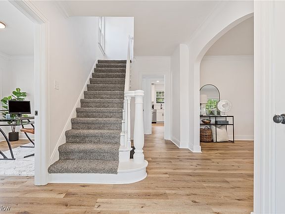 Completely renovated brick colonial blending timeless charm with modern upgrades! Boasting over 2,200 sqft, this spacious home features 3 bedrooms, a private office, a 406 sqft bonus room, 2.5 bathrooms, and a rare 3-car garage—plenty of room for the whole family. Step inside to a bright, refreshed interior showcasing luxury vinyl plank (LVP) flooring, modern black finishes, fresh paint, and new carpet throughout. The heart of the home is the stunning, fully redesigned kitchen, complete with 42” white shaker cabinets, a brand-new stainless steel appliance package, Calacatta countertops, a large single-basin undermount sink, sleek faucet, modern cabinet hardware, pantry, breakfast bar, and a cozy eat-in nook with built-in cabinetry. Adjacent to the kitchen is a spacious formal dining room, perfect for entertaining and hosting holiday gatherings. The oversized living room is a showstopper, featuring a floor-to-ceiling LED fireplace, crown molding, and abundant natural light. Need to work from home? The private office includes exterior access to the patio—a great work-from-home setup. A convenient half bath on the main floor is ideal for guests. Upstairs, the reimagined primary suite sets this home apart with his-and-hers closets, a walk-in shower, and all-new modern finishes. The refreshed basement offers even more living space, including a carpeted bonus room with egress window, recessed lighting, a laundry room with utility sink, and a storage area with new glass block windows. Additional updates include: newer windows throughout, roof less than 10 years old, new gutters (2022), brand-new water heater (2025), updated plumbing and electrical, and NEW AC (2025) - Agent Owned