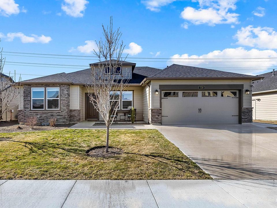Welcome to this ENCHANTING single level home, meticulously maintained with all the upgrades already complete. Watch exquisite SUNRISES from your front porch and beautiful SUNSETS from your large 17 x 13 back covered PATIO. This beautiful home offers one of the best locations in this community, featuring 4 bedrooms, two bathrooms with over 2000 square feet of welcoming, EXPANSIVE and sophisticated living space. The spacious private primary bedroom boasts a dual vanity bathroom, extra counter space and separate shower. CONTEMPORARY upgrades throughout the home, include elegant GRANITE counters tops in the kitchen and bathrooms, a full HIP ROOF, French doors, water softener, reverse osmosis on the fridge & kitchen sink, interior of home has been freshly painted in last couple of years, a cozy FIREPLACE, upgraded appliances in a CHEF’S dream kitchen, large island, and plenty of storage. Over $54000 spent on UPGRADES. Don’t wait to see this gem in person!
