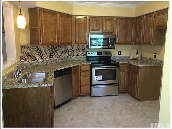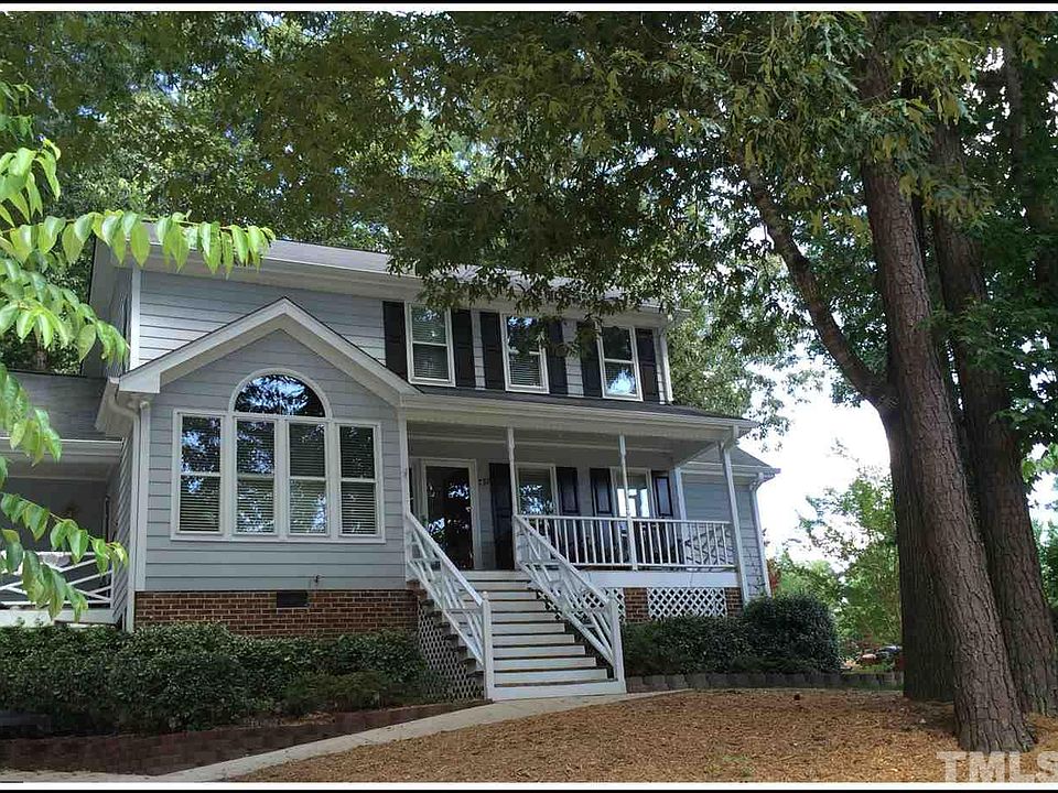 PRICE REDUCED AND MOVE-IN READY! Fresh paint, all new carpet. New vinyl, granite counters and SS appliances in the kitchen. Hardwoods in hall and LR separate formal DR plus sunny breakfast area washer and dryer will stay. 1st floor master with WIC and generous master bath; 2 more bedrooms upstairs. Rocking chair porch in front and oversize screened porch in back, plus deck and patio. Back yard beautifully landscaped and partially fenced. Quiet n'hood. Convenient Wake Forest location off 1A.