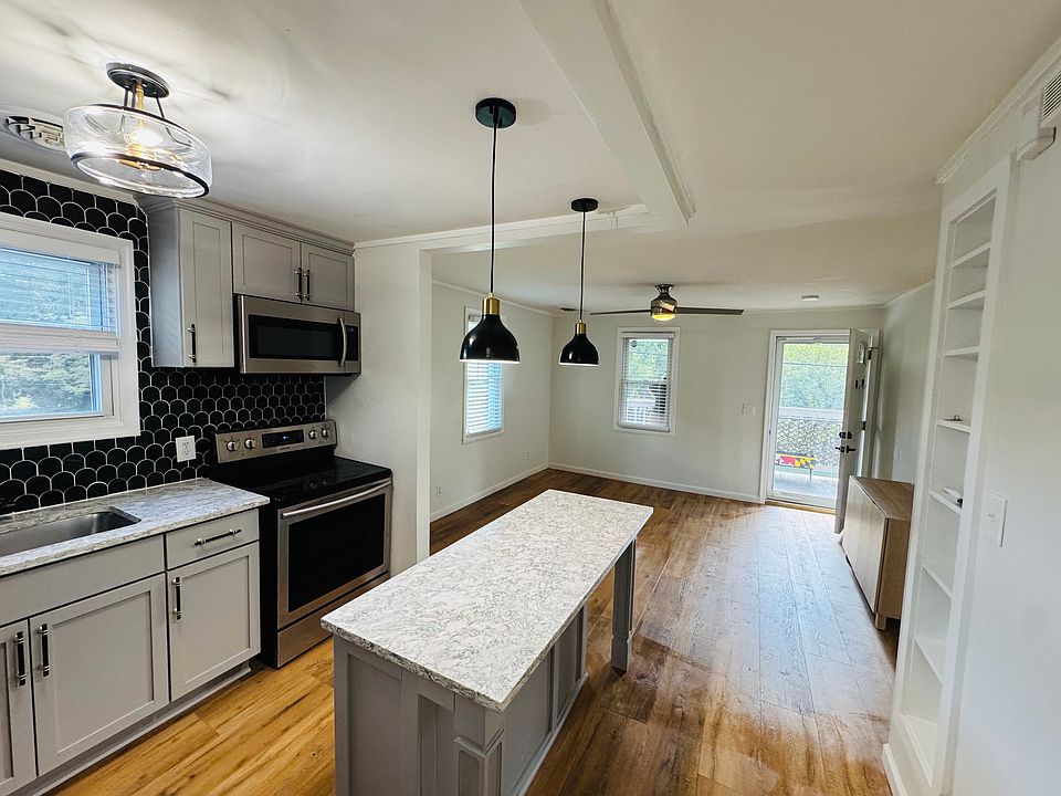Additional basement storageOff street parkingCovered front porchModern open concept kitchen