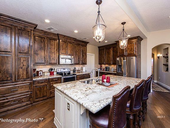 As soon as you pull up to this spectacular Tuscan style home quality is what you see, this home hits all the high notes!! Spectacular Virgin Valley mountain views from living room and front covered patio, you can sit and relax inside or out to appreciate their beauty! Inside the home it boasts of high quality finishes with custom fixtures, hardwood and travertine tile floors, beautiful granite counter tops and step and staggered knotty alder cabinets throughout home. Stainless steel appliances in kitchen with under cabinet lighting for that great night ambiance. Huge walk in pantry and large laundry room with cabinets, storage galore. From the spacious master bedroom out the glass door is a covered patio with pavers to sit and enjoy the sun. The master bath boasts a large travertine walk in shower with a separate tile surround garden tub and high counter tops with double sinks and brushed bronze fixtures. Lets not forget the large walk in closets with lots of built-ins. The garage has an area to park a golf cart and extended on one side to accommodate a truck or just use as extra storage. This home is 2 X 6 construction and sits on a corner lot at the end of the street
