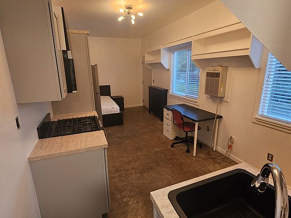 Charming ground floor studio/tiny house! Includes all utilities and wi-fi! Furnished with built-in full size bed. Includes gas range, microwave rangehood, full size bed, desk and chair, lots of storage. Off street parking. Heated floor. Lots of yard space, community garden and orchard, shuffleboard court, bike garage, BBQ and patio.